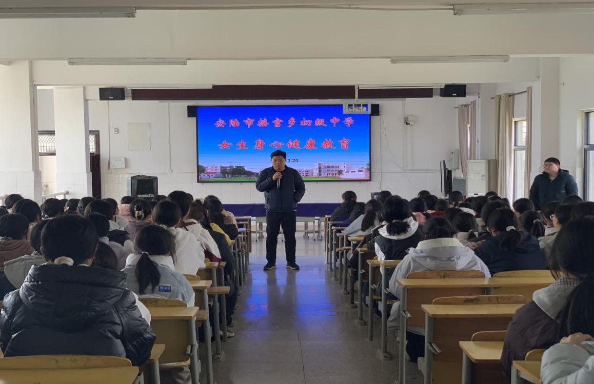 通讯员江比宝 赵云 刘雨曼 为引导初中女生树立正确的价值观与健康观,帮助她们科学应对青春期困惑、规范日常行为,3月23日,安陆市接官乡初级中学邀请学校健康副校长、接官乡卫生院徐医生,为全校初中女生带来了一场以“自尊自爱自强自立”为主题的女生身心健康教育专题讲座。