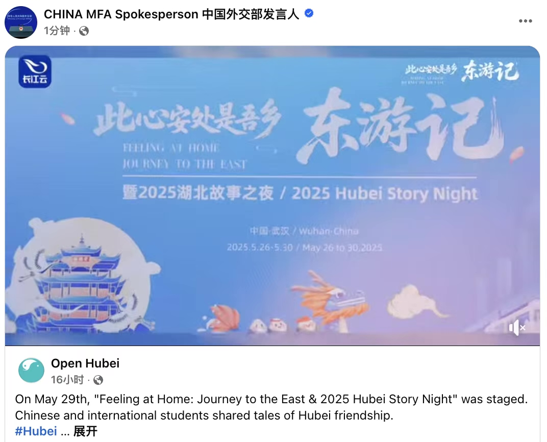 “此心安处是吾乡”国际网络传播品牌自创立以来,始终以故事为核心、情感为纽带、“外嘴发声”为特色,通过与多元IP深度联动,让中国故事更具国际可信度与传播穿透力。2024年品牌推出《此心安处是吾乡》系列短视频,以外国大V第一视角,从投资中国、商贸往来、生活融入、文化交流等多维度真实生动地展现在华外籍人士积极融入中国的美好图景。2025年品牌精心打造“东游记”主题活动,邀请多国博主和留学生沉浸式体验湖北历史文化底蕴和科技创新活力,并在2025湖北故事之夜活动中讲述自己与中国的故事。