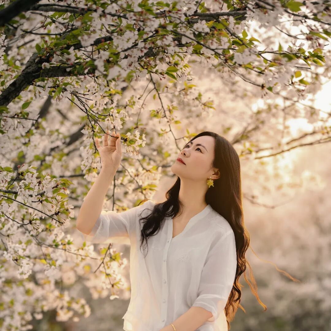 穿搭建议选择白色、浅蓝等浅色系衣物,与樱花形成呼应,拍出清新感;