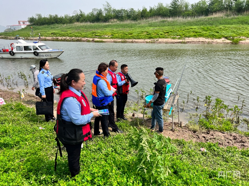 执法人员正在劝离钓鱼人员(央广网发 江夏区农业综合执法大队 供图)
