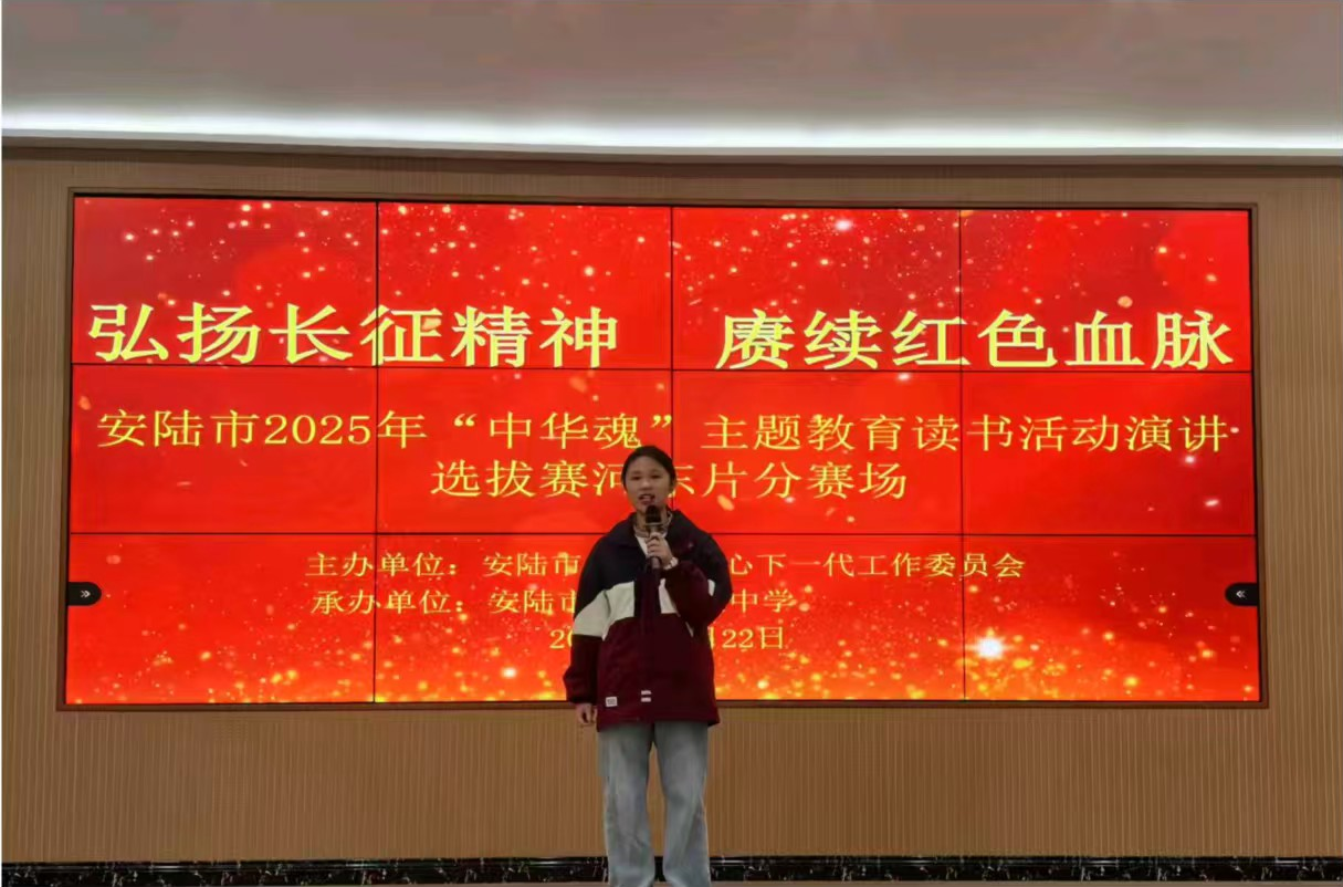 通讯员武凌子 10月22日,安陆市南城初级中学多功能报告厅内掌声阵阵,安陆市2025年“中华魂”主题教育演讲选拔赛(河东片)在这里举行。来自片区14所中小学的17名师生同台竞技,共同谱写红色传承新篇章。