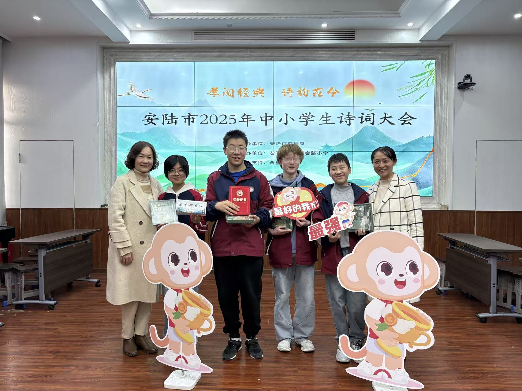 通讯员赵孟柏 近日,在安陆市2025年中小学诗词大会中,实验初中代表队凭借扎实的诗词功底与出色的现场表现,从众多参赛队伍中脱颖而出,荣获初中组一等奖,为学校赢得荣誉。
