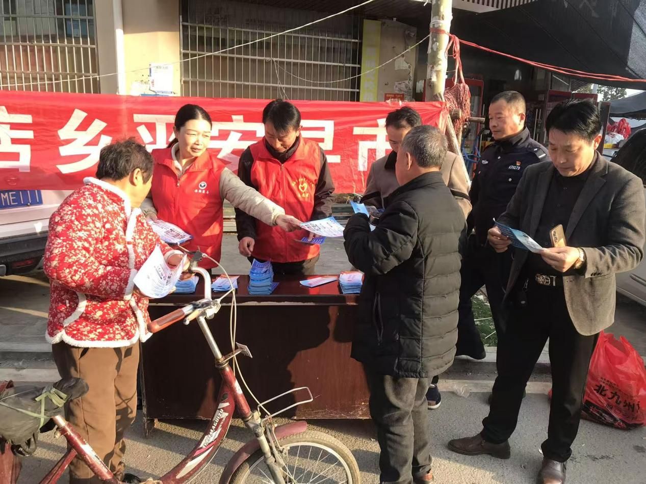 在教育街集市,“陈店乡平安早市”的红色横幅格外醒目。志愿者们身着红马甲,在宣传台前向过往群众发放平安建设、防诈反诈、网络安全等宣传手册。他们用当地方言,生动讲解电信诈骗常见套路、矛盾纠纷化解途径和信访流程细节,耐心解答群众关于财产安全、邻里纠纷的各类疑问。