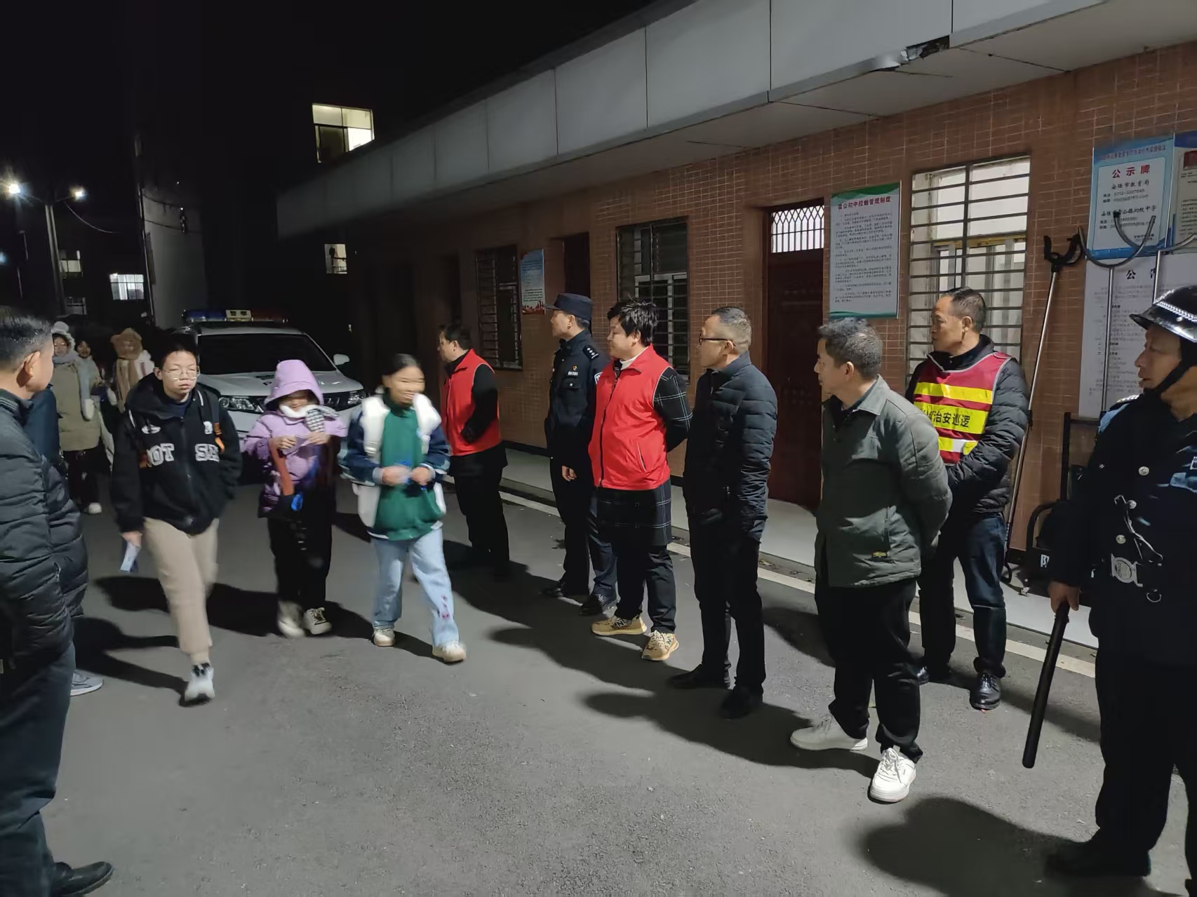 针对此情况,本次行动周密部署:民警加强巡逻疏导,维护秩序;综治办现场协调,排查隐患;校方密切关注离校情况。身着统一标识的志愿者活跃在路口校门,引导人流,提醒安全,提供帮助。多方协作下,放学时段秩序井然,学生们在温暖灯光中平安离校。