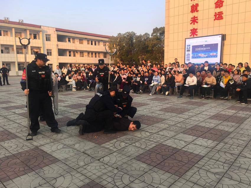通讯员张园丽 李金波 邓鑫雨 “陌生链接不点击,可疑来电不轻信!”12月5日下午,安陆市接官中学内气氛热烈。接官乡平安办联合市反诈办、公安局特警队、派出所、司法所等部门,共同开展了“全民同心 反诈同行”主题宣讲及反恐防暴演练活动,为全校300余名师生带来一节“干货满满”的安全防护课。