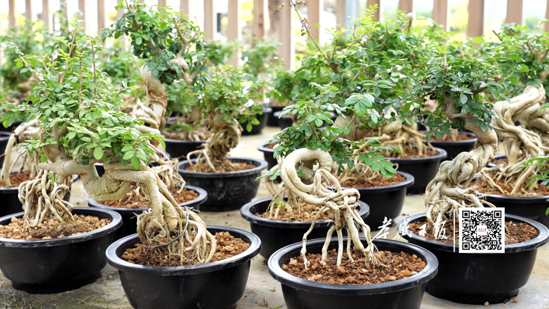 “我们提供种苗和技术,农户负责基础种植,基地回收后进行筛选、杀菌、定植、造型,并采用高提根、须干接枝等特色技法,让每盆盆景都兼具观赏性与艺术价值。”