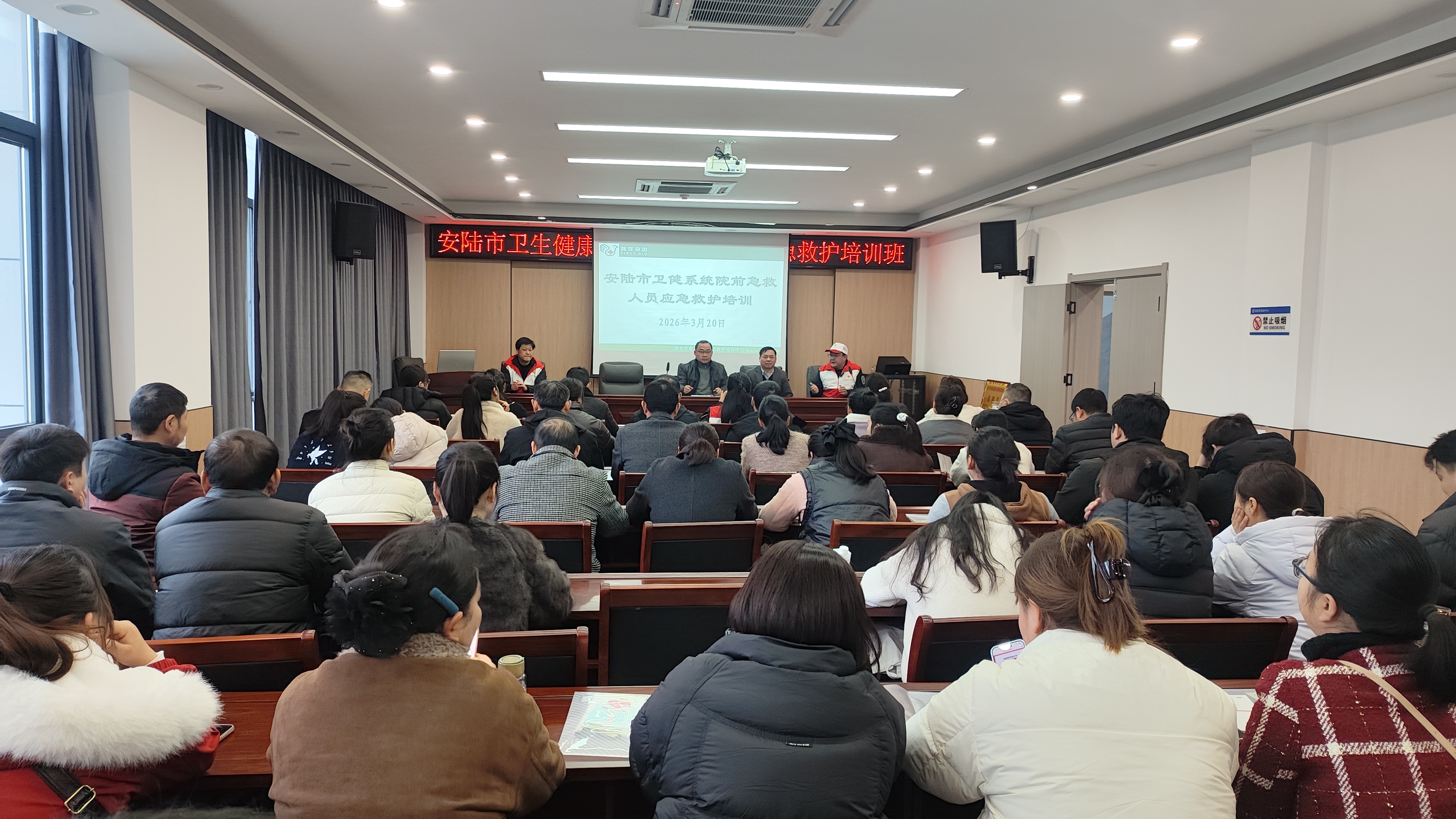 通讯员王晓曦 为提升院前急救队伍专业能力,筑牢公共卫生应急救援屏障,弘扬“人道、博爱、奉献”的红十字精神,3月20日,安陆市红十字会联合市急救中心举办卫健系统院前急救人员红十字救护员(初级)取证培训。全市约80名院前急救一线工作人员参加培训。