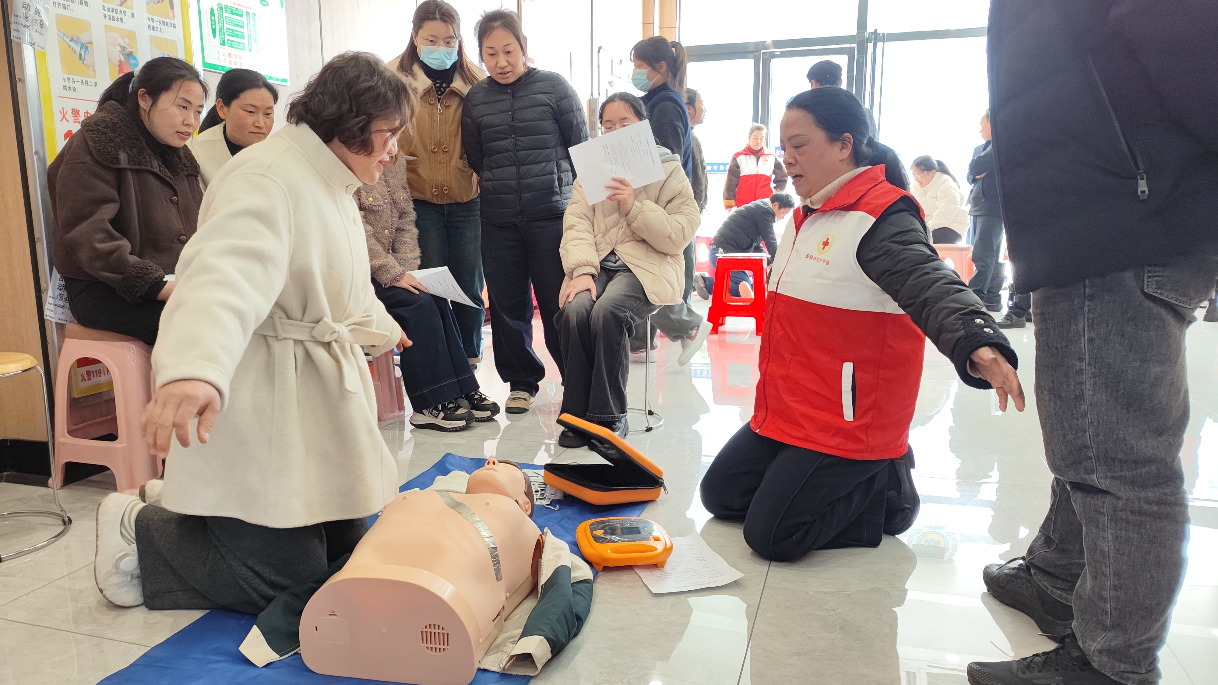 培训采取“理论+实操”一体化教学模式,系统讲解了红十字运动与救护基本知识、气道异物清除等核心内容,并聚焦心肺复苏、创伤救护等关键技能,开展了标准化操作演示和一对一实操指导。培训结束后,同步组织理论考试和实操考核,严格把关,确保参训人员学有所成、能救会救。考试考核合格者将获颁全国通用的红十字救护员(初级)证书。培训期间,红十字会志愿者还开展了“三献”知识普及和红十字救助项目介绍等人道主义宣传,共发放各类宣传折页500余份。