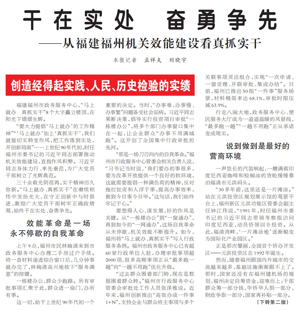 干在实处 奋勇争先——从福建福州机关效能建设看真抓实干