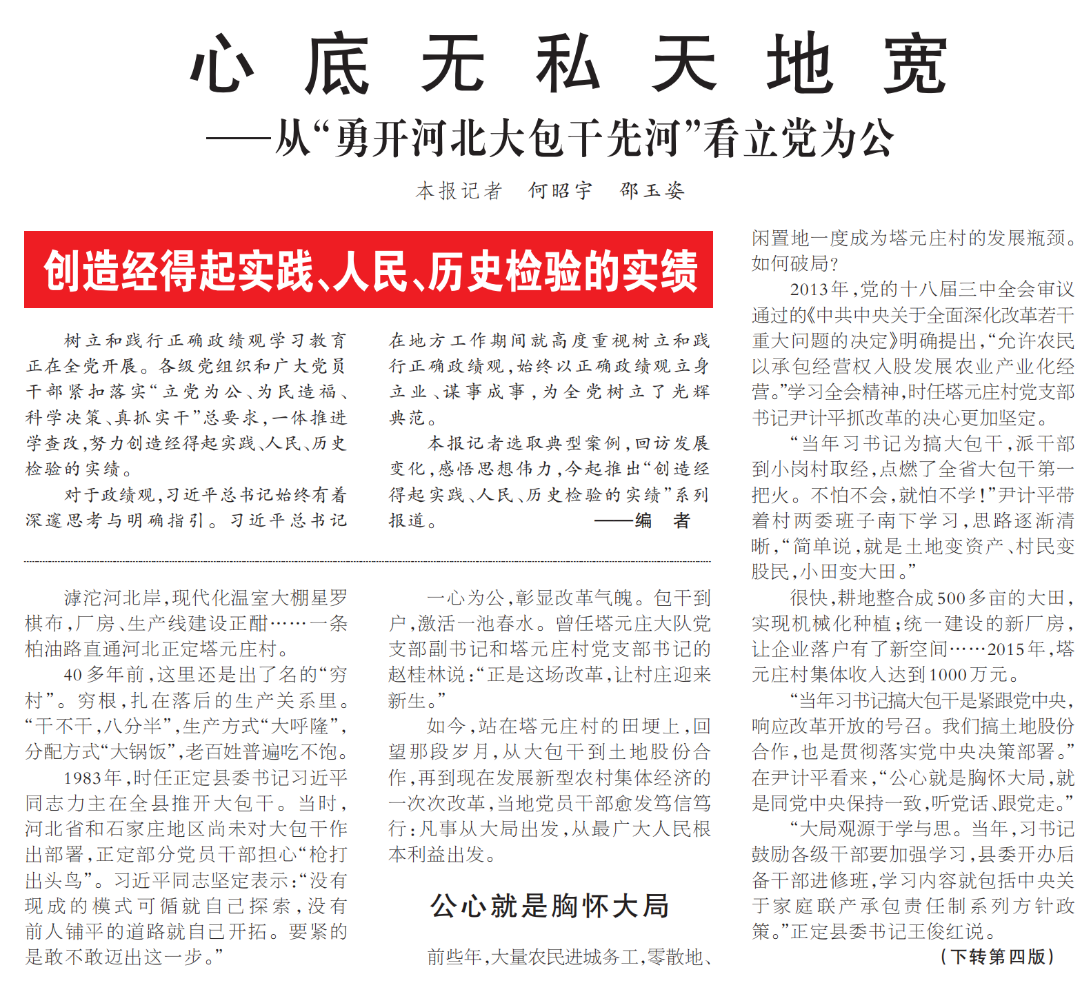 心底无私天地宽——从“勇开河北大包干先河”看立党为公