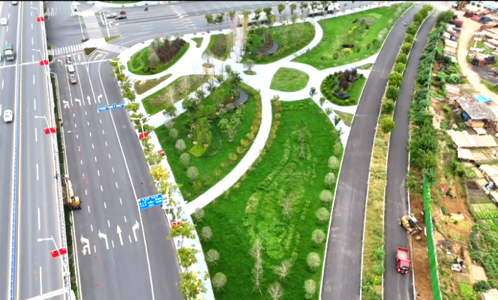 公园内,休闲广场上孩子们追逐嬉戏,景观湖畔杨柳依依,停车场里车辆停放有序。这片曾经的闲置边角地,如今已焕然一新。