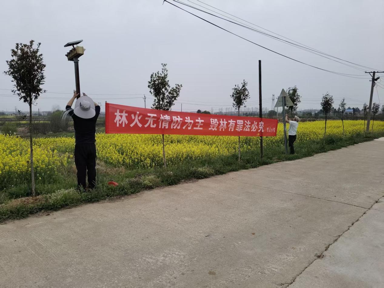连日来,工作人员分组行动,将防火宣传触角延伸至基层末梢。在村党群服务中心、主要交通路口及进山要道等人员流动密集区域悬挂宣传横幅。“护林防火光荣,纵火毁林可耻”“全民总动员,防火保安全”“争当禁烧模范,争做文明公民”等40条标语格外醒目,以直观简洁的方式向群众传递防火要求,提醒大家在缅怀先人的同时,勿忘森林防火安全。