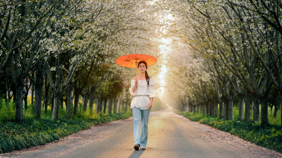 穿搭建议选择白色、浅蓝等浅色系衣物,与樱花形成呼应,拍出清新感;