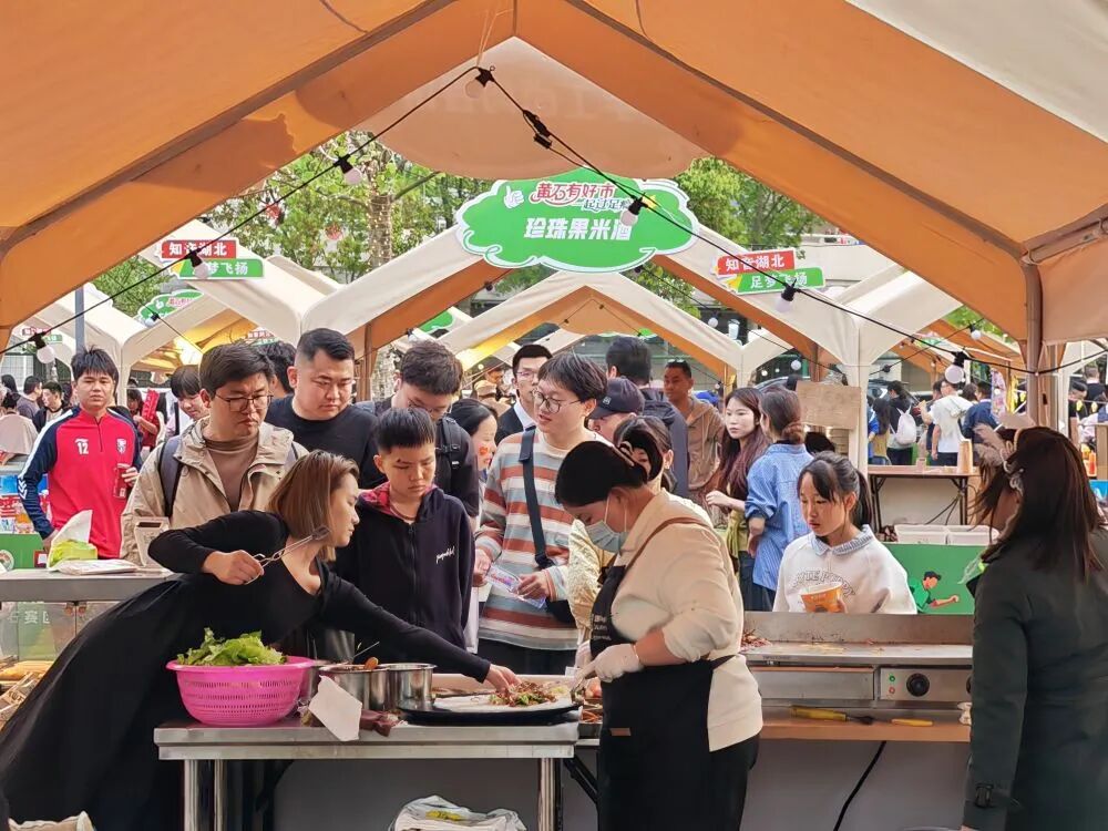 观众在黄石奥体中心外排队免费品尝鳜鱼汤。新华社记者 乐文婉 摄从黄石出发