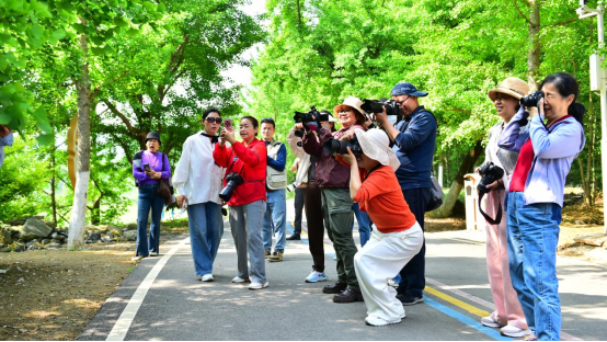 “虚怀若谷”古树枝繁叶茂,银杏时光隧道静谧悠远,漫山新绿与白墙黛瓦交相辉映,铺展成一幅绝美田园春景图。不同于往年“秋季赏叶独热”的景象,今年不少游客攥着乡超票根,带着赛场余热奔赴这场春日之约。