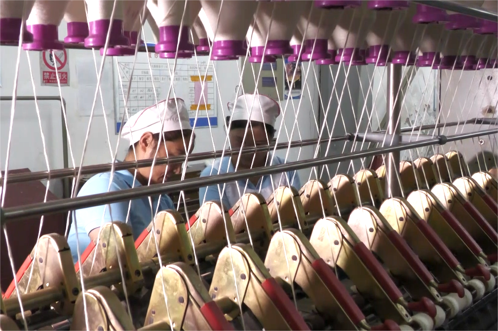 春节临近,在湖北安陆安棉纺织有限公司车间里,党的十九大、二十大代表、湖北安棉纺织有限公司党委副书记、纺纱分厂厂长助理仰媛媛,正和工人们在生产线上忙碌。