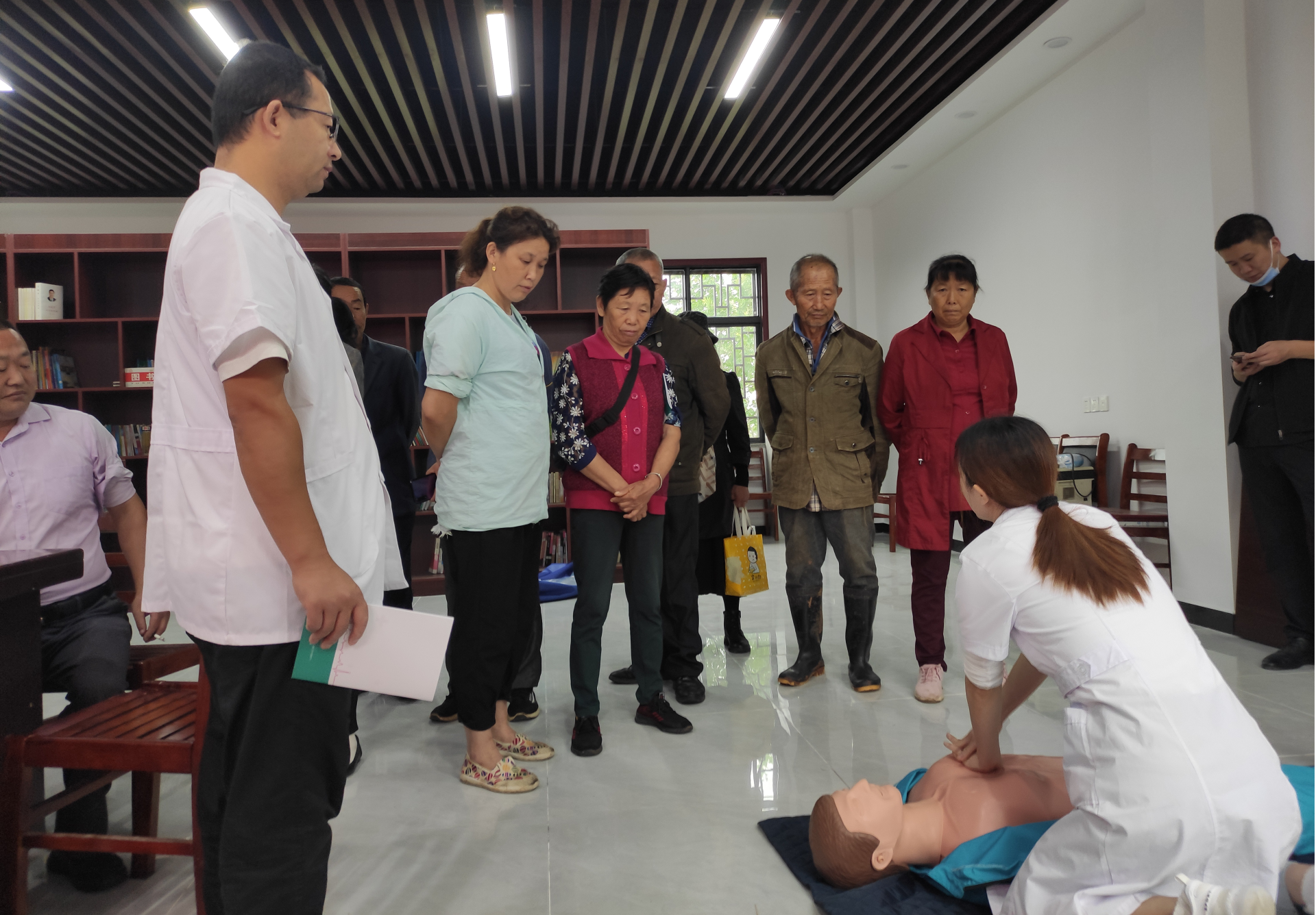 随后,张佩玉护士向居民展示了心肺复苏实操,详细讲解了胸外按压、开放气道、人工呼吸、现场急救等知识,使居民们掌握心肺复苏的基本技能,在遇到危险需要紧急救护的情况下能及时进行施救。