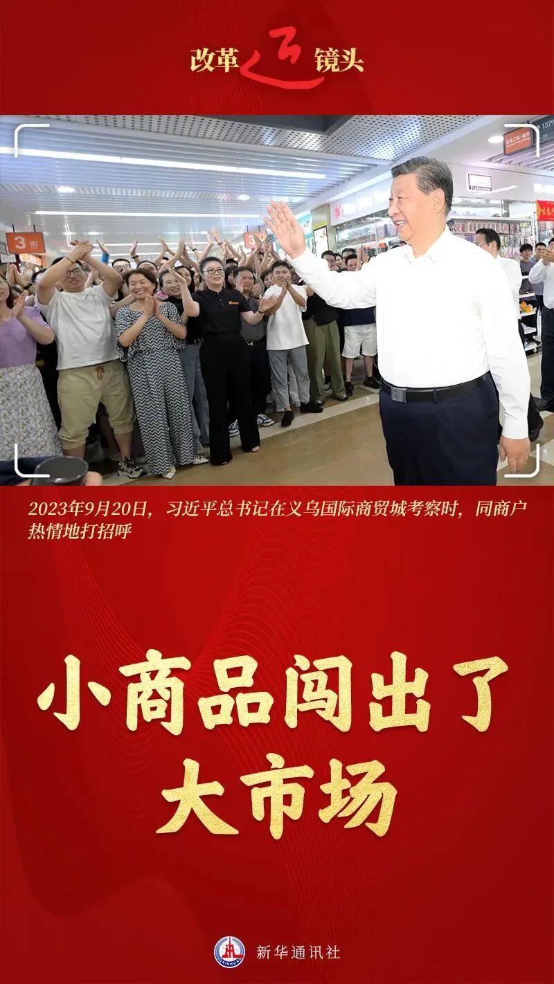 2023年9月20日,习近平总书记来到这里,在义乌国际商贸城二区考察调研。新华社记者的镜头记录下这样的生动瞬间:总书记深入商户中间,同他们面对面亲切交流,热烈的掌声、问候声此起彼伏。