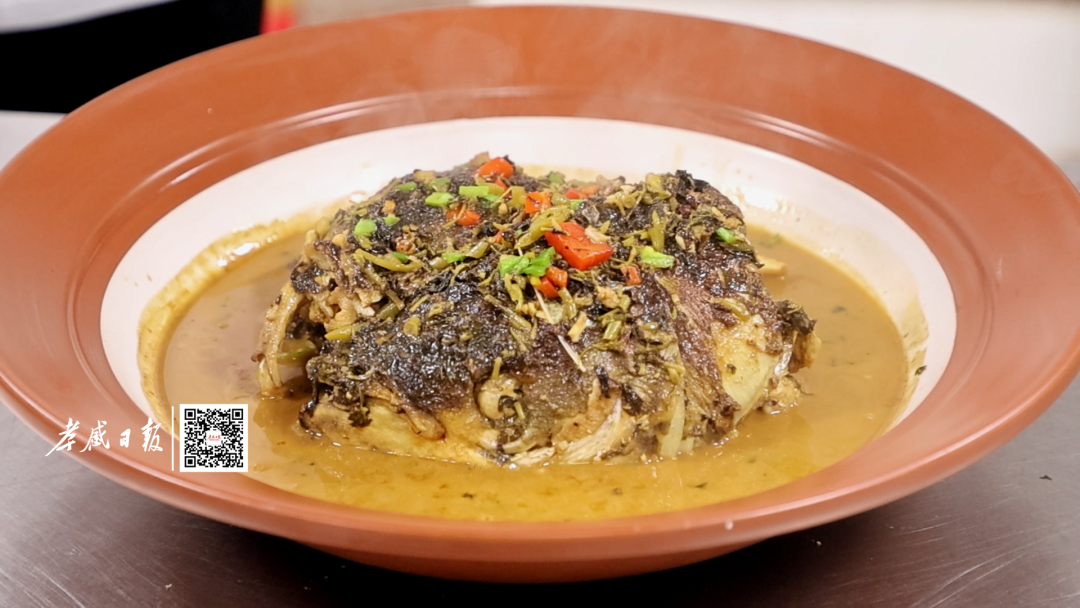 “以前,白花菜烧鱼头的制作比较简单,就是把腌好的白花菜和鱼头一起煮。”