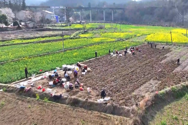 阳春三月,走进安陆市孛畈镇三里社区白芨种植基地,只见不少村民有条不紊地进行采挖、抖土、分拣、装袋工作。种植户邓尊强穿梭其间,不时检查白芨的出土成色。