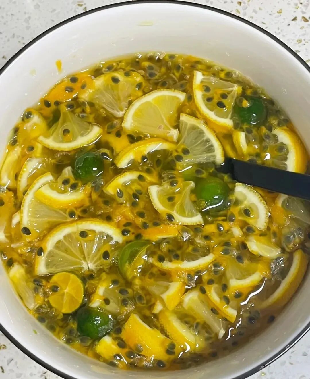 毕竟到了夏天,百香果随便泡点水,搭配一些柠檬,就是香甜的百香果柠檬水,再放在冰箱冰镇一下,喝到嘴里,凉凉的,那叫一个爽!