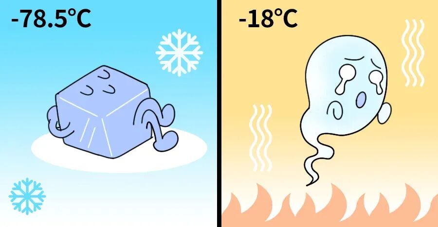 我们家里冰箱的冷冻层,一般只有 -18℃ 左右,这个温度是远远高于 -78.5℃ 的,对于干冰来讲,这个温度太“炎热”,分分钟就变成气体了。