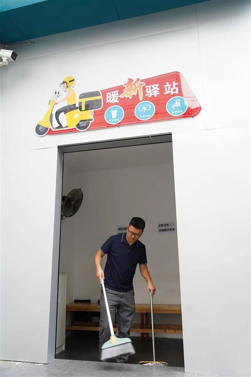 社区办公地点临近步行街,附近的外卖小哥较多。关红翔协调鹤峰县供电公司将步行街一处闲置场所改造成“暖新驿站”,设置了插座、饮水机和休息座椅等。