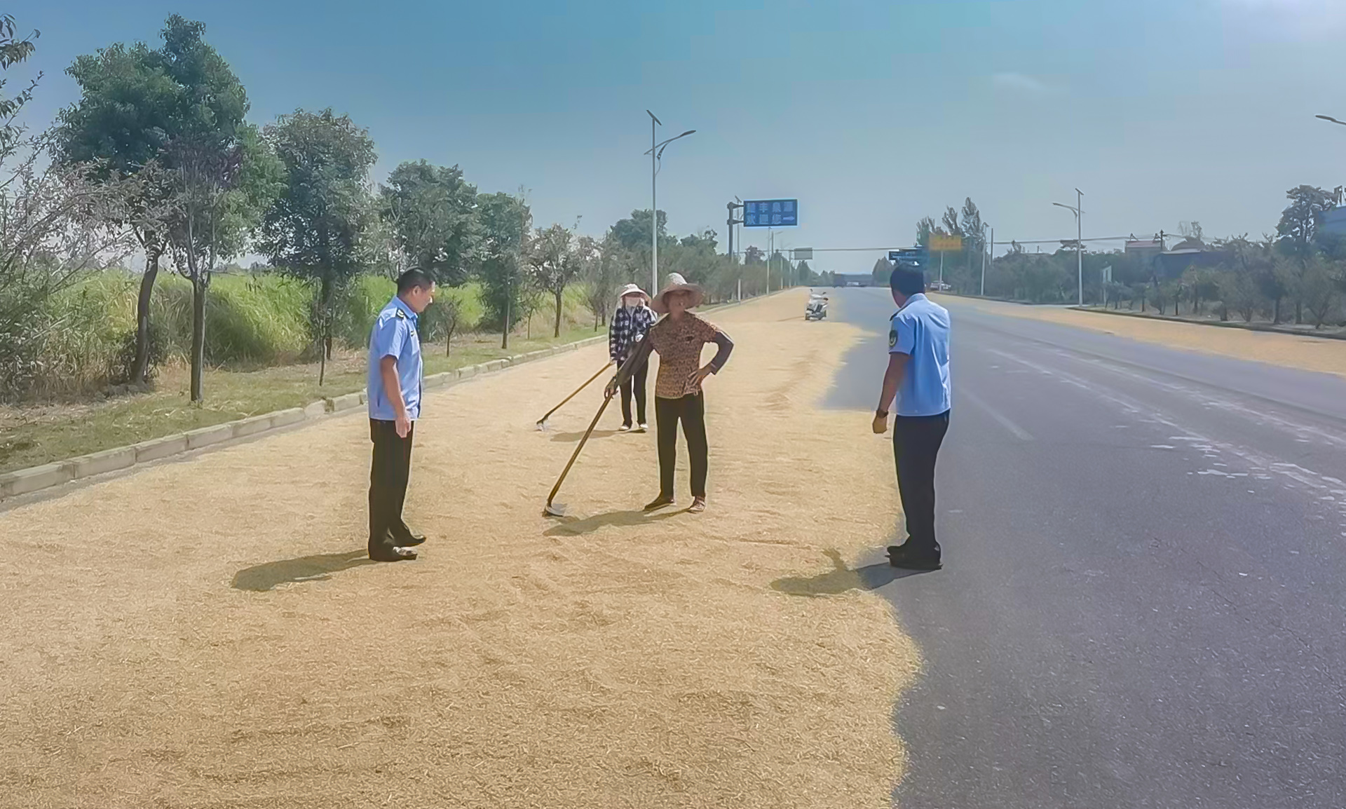 秋收时节,部分农户因晾晒场地有限,占用公路晾晒谷物,带来交通安全和粮食污染风险。镇综合执法中心执法队员采取巡逻与重点值守相结合的方式,对主干道和乡村要道进行不间断巡查,发现占道晒谷情况,立即耐心与农户沟通、做好劝离工作。截至目前,劝离占道晒谷农户15户,有效遏制了该现象的蔓延。