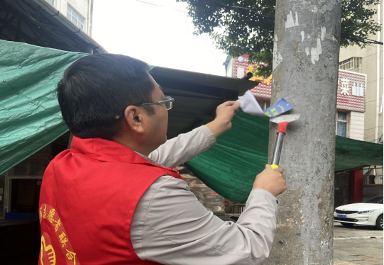 在德安北路,工作人员携带喷壶、铲刀、抹布等工具,分工协作推进整治。面对墙面、电线杆上的非法小广告、低俗标语,大家先喷除胶剂软化黏合剂,再用铲刀细致铲除,彻底清理残留痕迹。工作人员结合现场环境同步向不少路过的居民宣讲文明创建意义,鼓励居民积极参与文明创建,引导大家共同维护公共空间整洁,形成“干群同心护文明、携手共建美家园”的氛围。