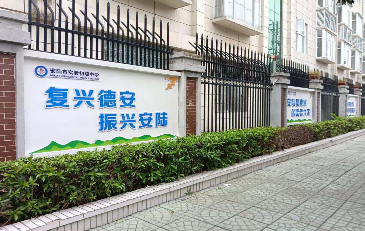 通讯员赵孟柏 近日,安陆市实验初级中学对文昌路段校园围墙完成了装饰更新。该校以“复兴德安 振兴安陆 创建全国文明城市”为己任,积极克服资金困难,将普通围墙打造成为一处融办学特色与时代精神于一体的育人新阵地,以教育担当为安陆发展注入文明动能。