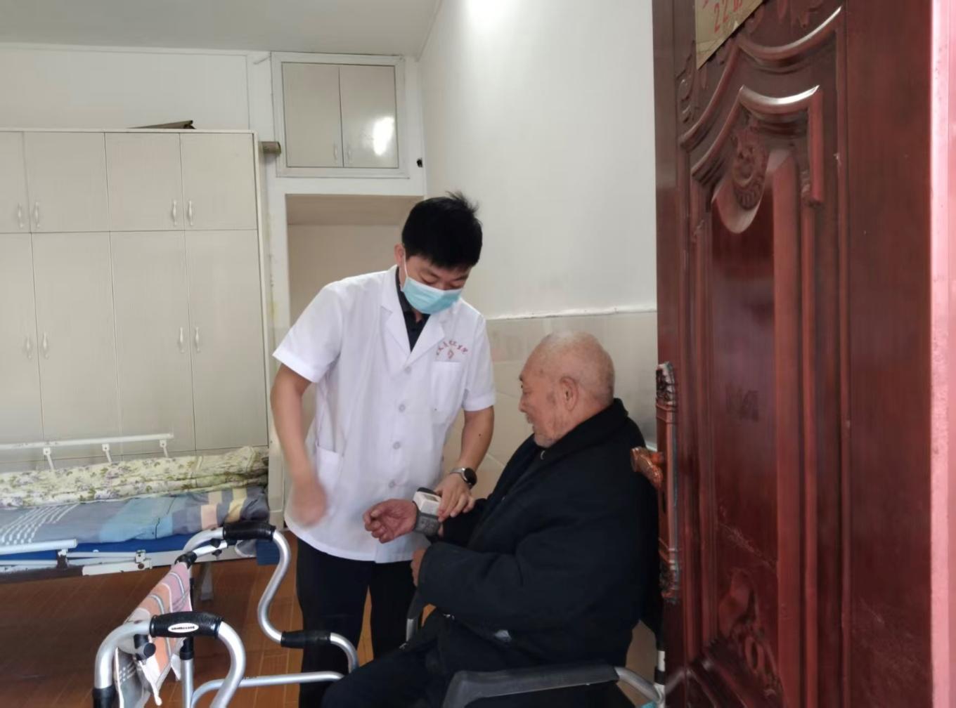 针对部分行动不便的老人,医护人员分组开展“一对一”上门服务,逐一进入房间进行体检,仔细查看日常用药情况,并叮嘱护理人员密切留意老人身体变化。医疗团队还向福利院赠送了常用药品,并向工作人员和老人们普及了秋冬季节常见疾病的预防知识。