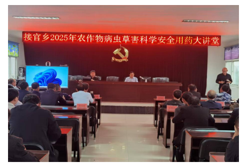 为提升村干部与农户的科学防控意识,9月25日,接官乡组织举办“2025年农作物病虫草害科学安全用药大讲堂”,特邀市农业技术推广中心植保专家与乡技术负责人同台授课。课堂聚焦现实痛点,通过典型案例对比分析,将受灾田块作为“活教材”,让与会者在“阵痛”中经历了一场对症下药的“科普洗礼”。