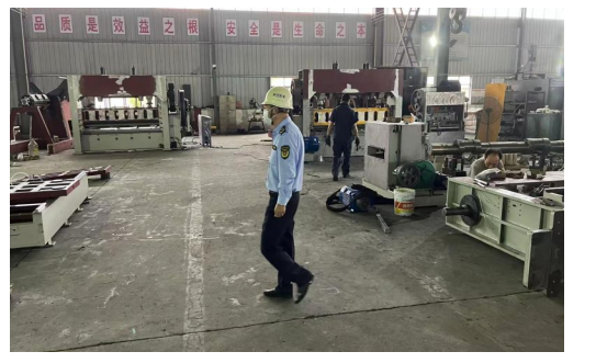 在机械加工车间,检查组逐一查看特种设备、电路布局、消防通道等重点部位,不放过任何细节。“哪怕是一根老化的电线、一处堵塞的通道,都可能成为安全事故的导火索,必须严格排查。”巡查组组长严贵元一边检查一边强调。