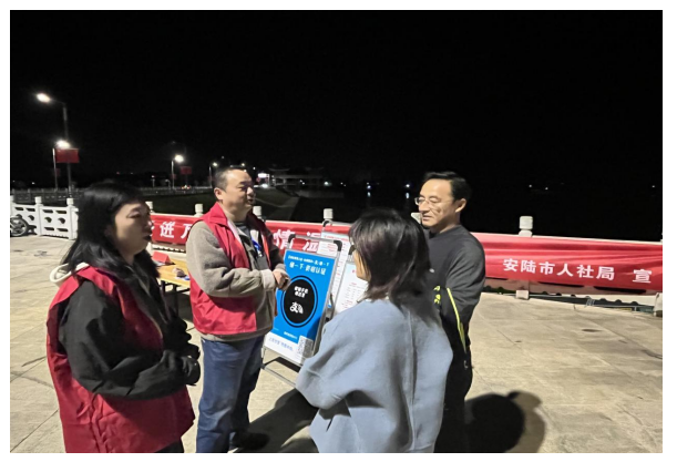 本网讯 通讯员彭华 朱新生 10月24日,安陆市人社局将“社保服务进万家”活动搬进解放山水库观景台休闲区,以“流动宣讲+定点服务”的模式,为饭后散步、带娃遛弯的市民送上“贴心定制”的民生服务,让政策温度在夜色中传递。