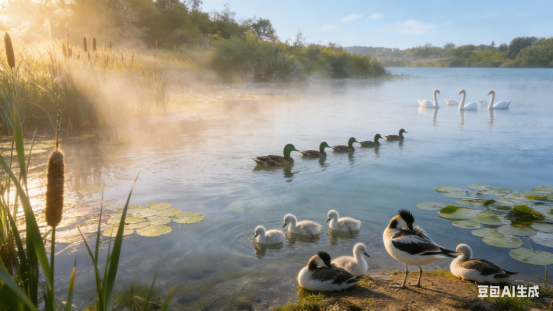 近岸的浅水区,大片的芦苇、荷花、水烛长势旺盛,形成了天然的“隐蔽长廊”,为候鸟提供了安全的筑巢栖息场所;