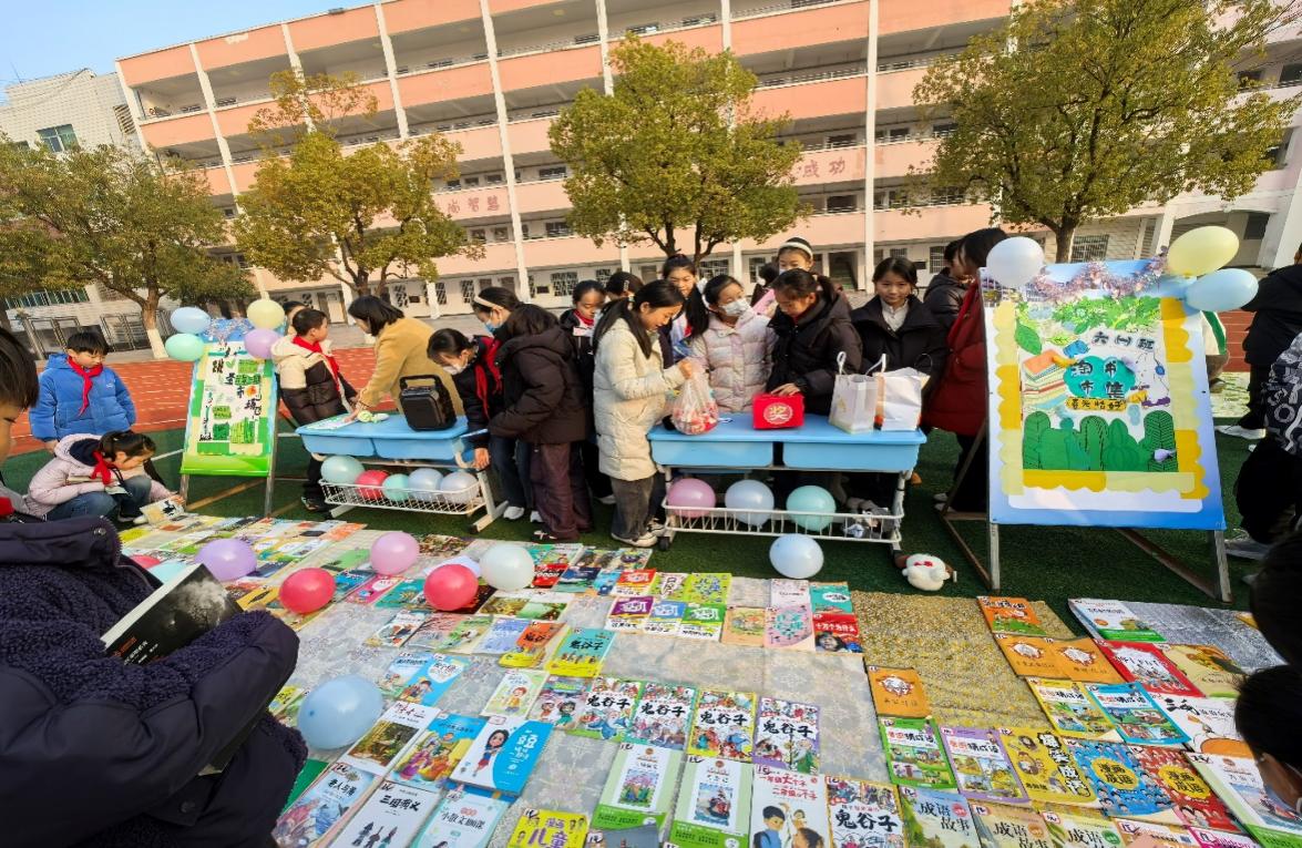 当天,校园换书市集热闹非凡。摊位前书籍琳琅满目,学生们驻足挑选,交流书中精彩情节。有的以书会友,结成“阅读伙伴”;有的朗读片段、畅谈心得,吸引众人聆听;还有的展示才艺,用歌声、快板等形式创意招揽“顾客”。老师们也积极参与,与学生换书畅聊,成为活动中一道温暖风景。