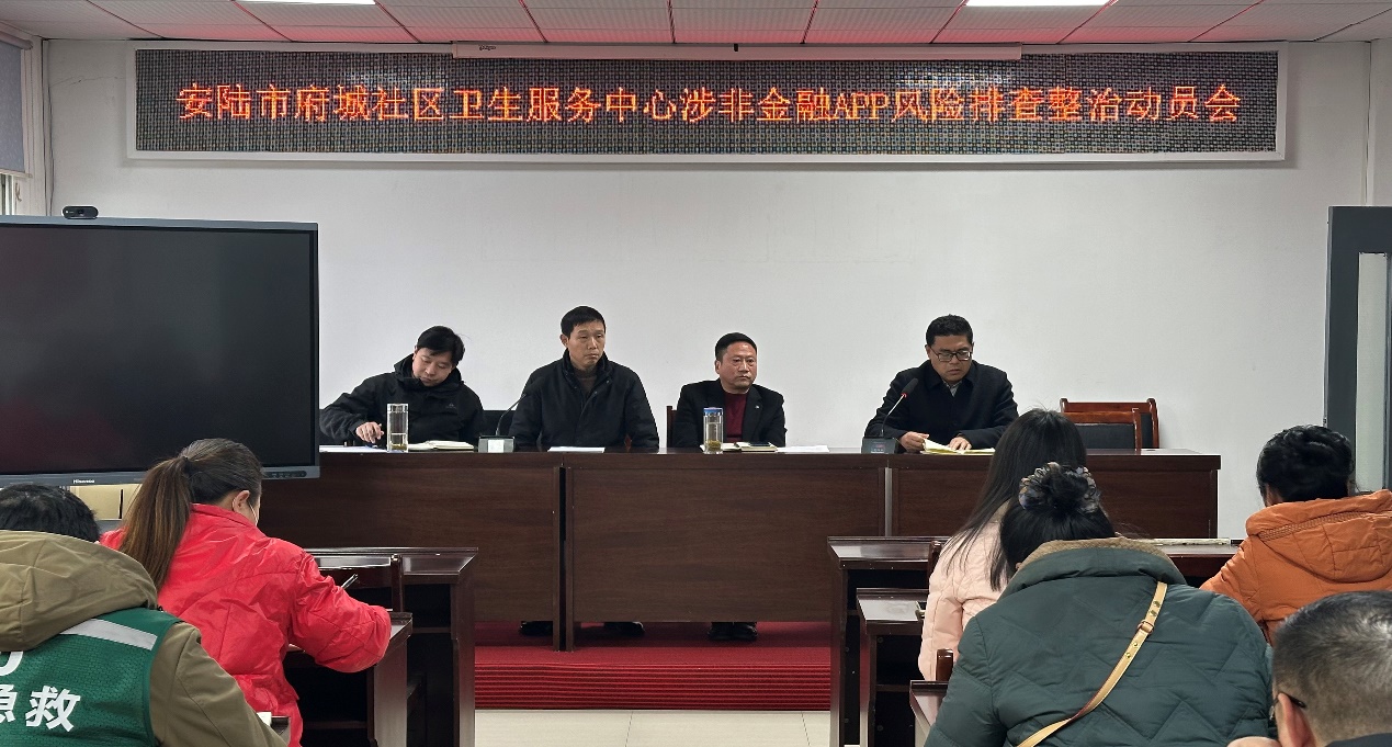 通讯员蒋菊香 为落实省卫生健康委防范非法金融活动部署,践行“管行业必须管风险”要求,12月29日,安陆市府城社区卫生服务中心召开涉非金融App风险排查整治动员会,全面启动排查整治,致力筑牢群众金融安全防线。