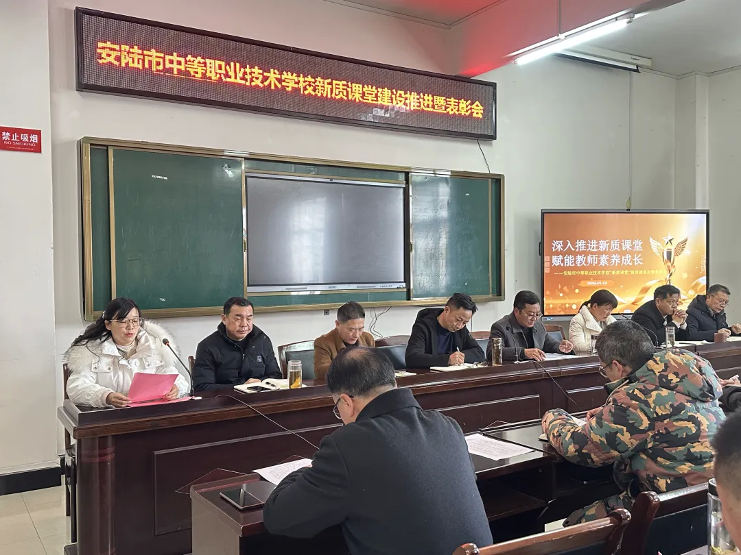 本网讯 通讯员周晨媛 1月13日下午,安陆市中等职业技术学校召开“新质课堂”建设推进会。学校党委委员、处室及专业部负责人、教研组长、全体参赛教师参会。