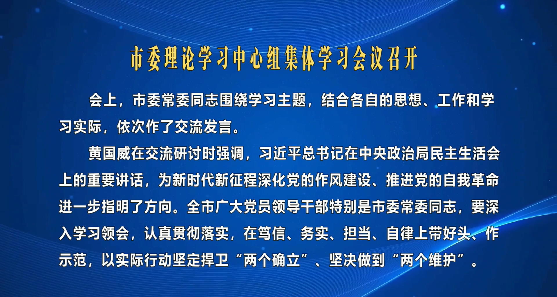 黄国威代表市委常委班子作对照检查,并带头作个人对照检查,其他常委同志逐一作对照检查发言,严肃认真开展批评和自我批评。