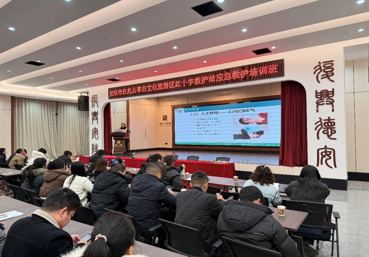 本网讯 通讯员张谨 1月29日,安陆市红十字会在白兆山李白文化旅游区救护站举办应急救护培训班,来自景区及周边的100余名学员参加。通过系统学习与实操演练,参训人员掌握了初级急救技能,进一步织密了景区安全防护网。