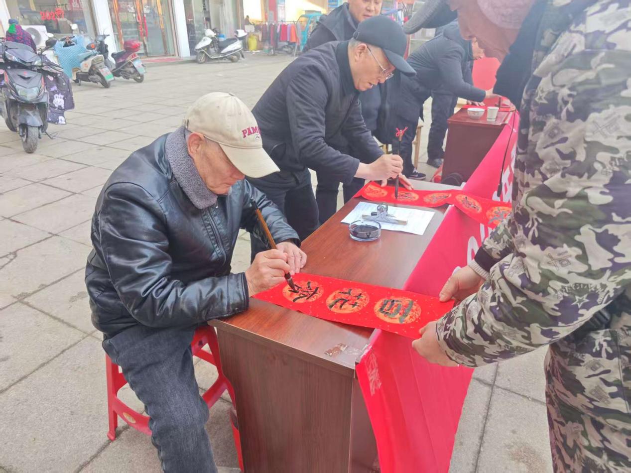 “得知镇上举办送春联活动,我第一时间就联系了主办方。”潘昌义说,“学习书法五年了,能有机会为乡亲们做点事,我觉得特别有意义。”他的书写桌前渐渐排起小队,只见他凝神运笔,一副副字体工整、笔力劲健的春联在红纸上流淌而出。