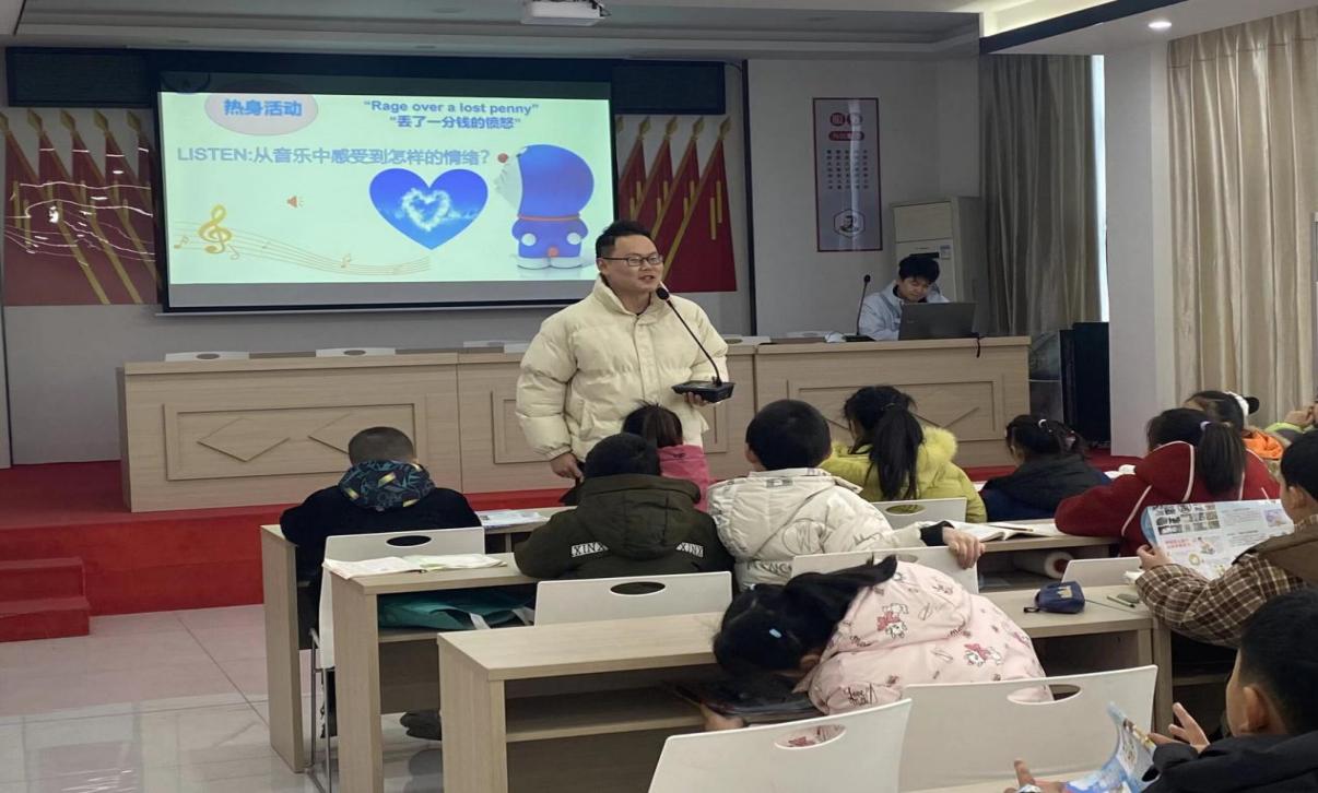 课堂以“聆听情绪”热身活动开启。伴随着乐曲《丢了一分钱的愤怒》,孩子们闭眼感受旋律中的情感流动,并踊跃分享听后感,迅速融入课堂氛围。