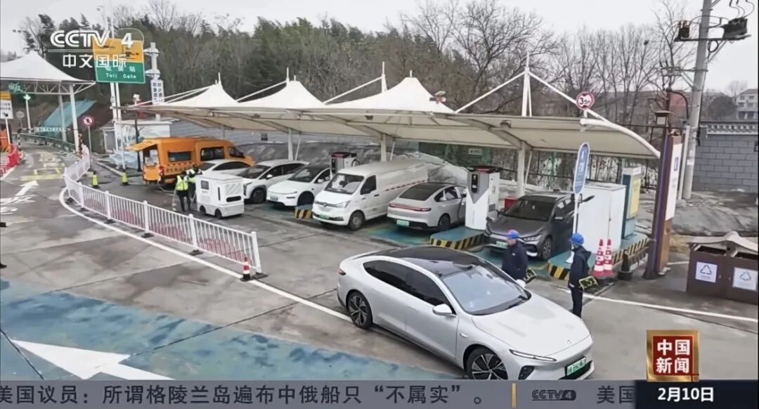 返乡新能源车主 陈虎:“服务区充电桩挺多的,布局也合理,吃个饭、遛两圈,电就充满了。 ”