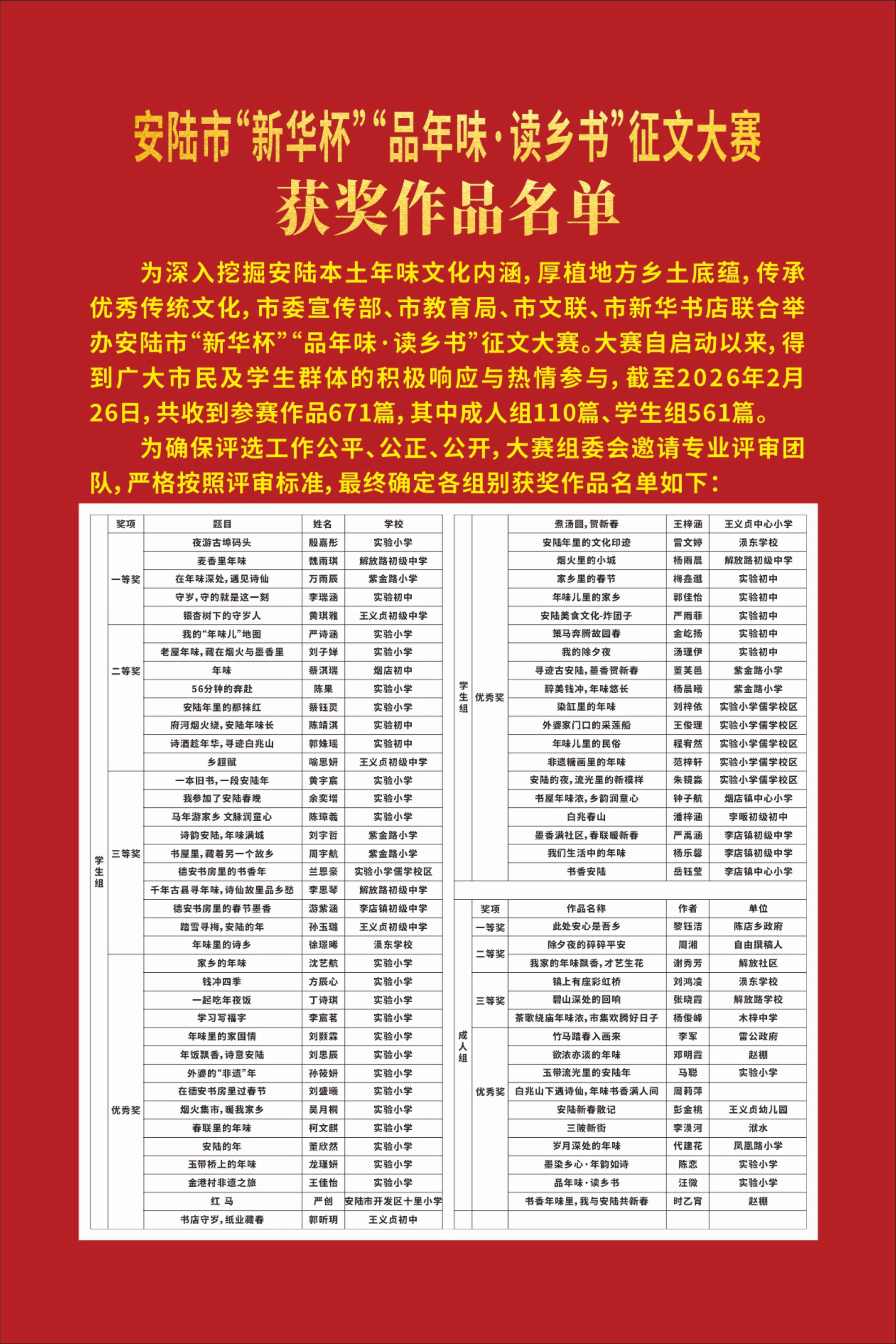 安陆市“新华杯”“品年味·读乡书”征文大赛获奖作品名单
