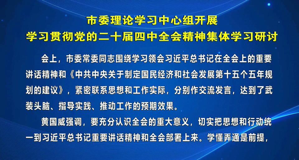 市委理论学习中心组开展学习贯彻党的二十届四中全会精神集体学习研讨